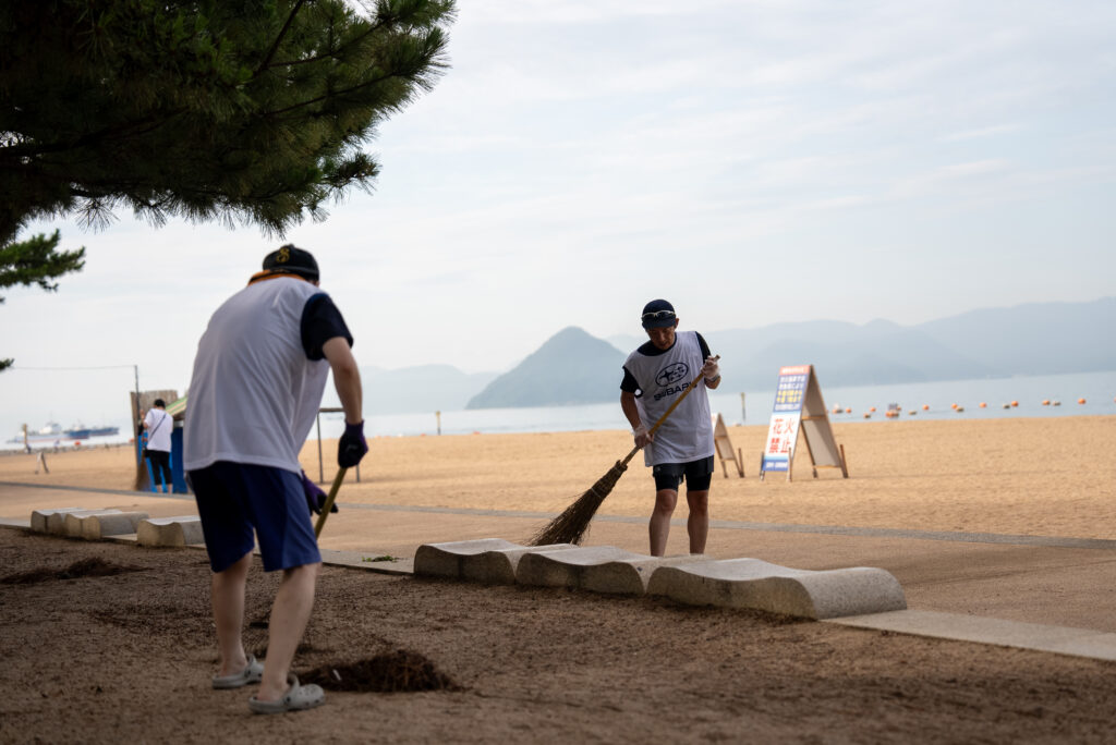 ボランティア活動として駐車場や海水浴場を中心に清掃しました。松葉や雑草が多かったですが、吸殻や花火の燃えがらも回収できました。早朝とはいえ暑かったですが、皆笑顔で気持ちの良い汗をかきました。