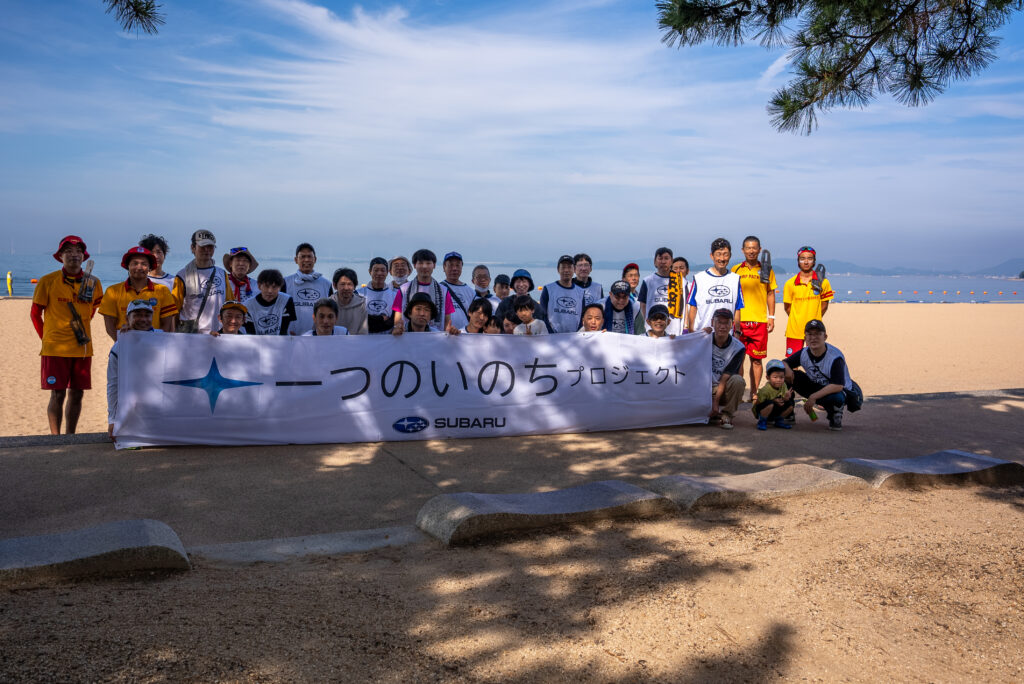 ビーチクリーン活動後には、「岡山ライフセービング協会」の指導のもと、ライフセーバー体験も実施してプロ意識・チームワークなどを学びました。当社は、スバルブランドが大切にしたい「ひと」や「自然」を守るために今後もさまざま活動に参加を行って参ります。