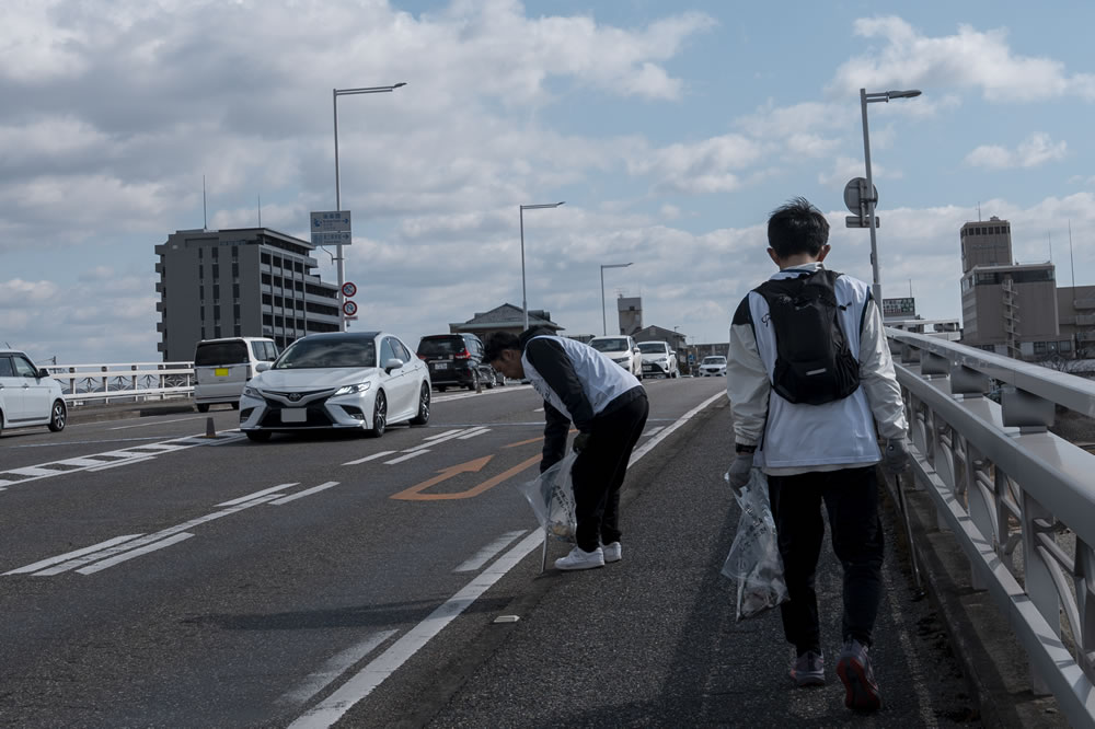 さすがに公園に近いエリアは清掃が行き届いていて目立つゴミはありませんでしたが、市街地に移動すると包装のビニールや吸殻が目立つようになりました。住宅地を抜け、後楽園の近くまで戻り、旭川の河原にも降りていき清掃を行いました。ここにはペットボトルや空缶、針金、発泡スチロールなど生活の中で出てきたゴミが溜まっていました。「このまま海に流れたら大変だ!」そんな会話をしながら沢山ゴミを拾いました。