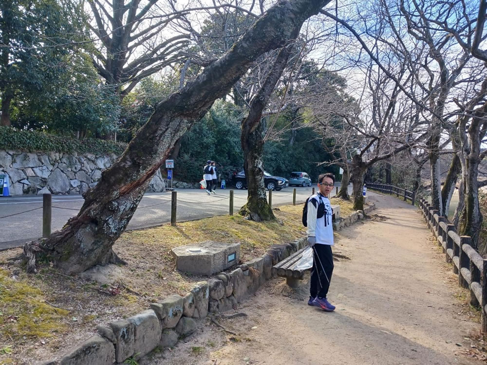 皆で会話をしながらウォーキングの様な感じでゆったりと周辺をまわっていきます。岡山後楽園の周りは、この時期の風物詩である芝焼きの香ばしいにおいが漂っています。