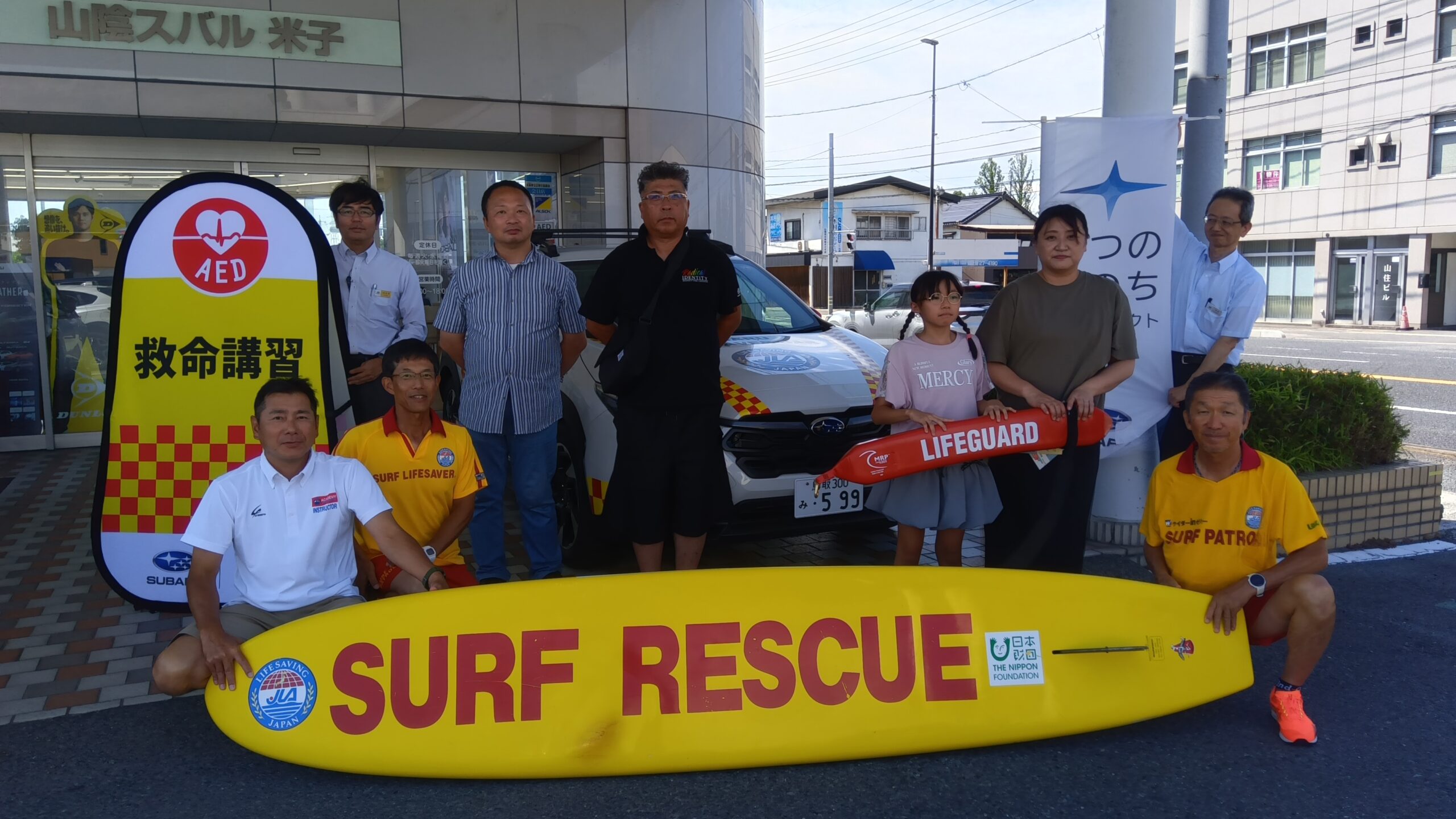 スバル中四国(株)では、「一つのいのちプロジェクト」の活動として、今年度も中国・四国地方の各県で活動されるライフセービング協会へライフセーバーカーを貸与しております。