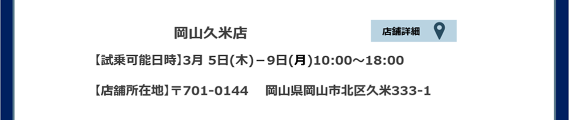 スバル中四国 岡山エリア 試乗車情報