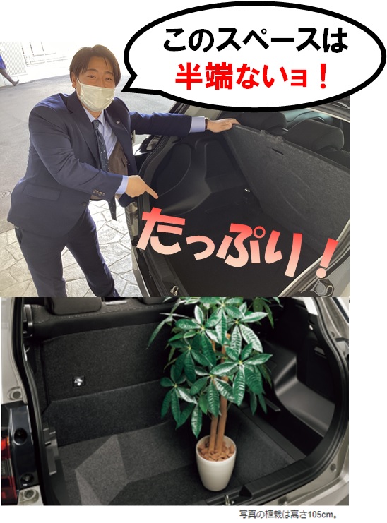 荷室にも工夫がされていて、ボードの下に大型サブトランクが出現!洗車グッズを入れておいてもいいし、写真のような高さがあるものも載せることができるんです!