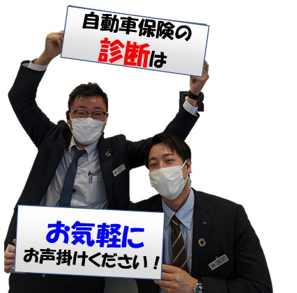 是非この機会に自動車保険の点検はいかがですか?保険証券を持参いただければ、その場で当店スタッフが診断いたしますので、お気軽にお声がけください。