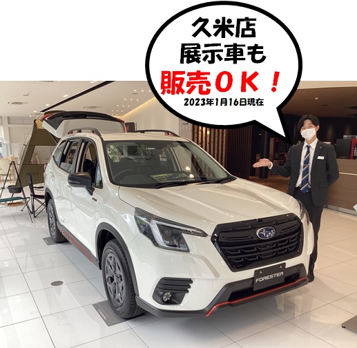 展示車でも、販売即納対応できる車両もございますので、お気軽に岡山久米店スタッフまでお声がけください。岡山久米店に展示中の『フォレスター X-BREAK』もOKです。※2023年1月16日現在