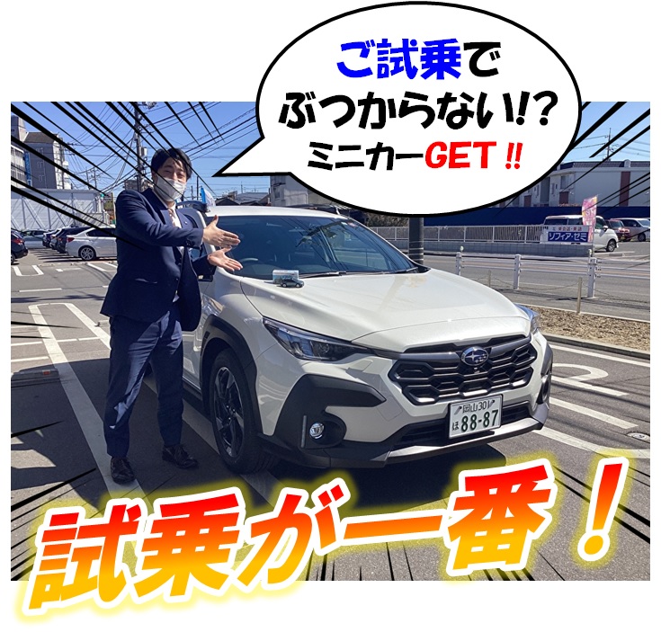 ご試乗で新型クロストレックのぶつからない!ミニカーをプレゼント中です!今週末迄ですので、この機会に新型クロストレックの試乗をご体感ください!
