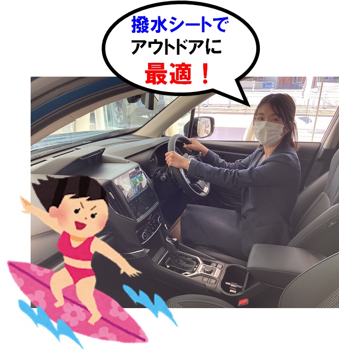 フォレスターのターボモデルで、撥水シートのご要望が多くありましたが、このモデルは水にもつよい「撥水シート」が採用されています!これからの季節「海」や「山」で大活躍すること間違いなしです!