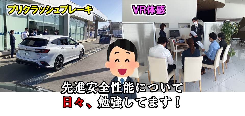 当店では、①プリクラッシュブレーキ体感 ②VR体感を皆様に安心して体感いただくために、定期的に勉強会を開催しております!