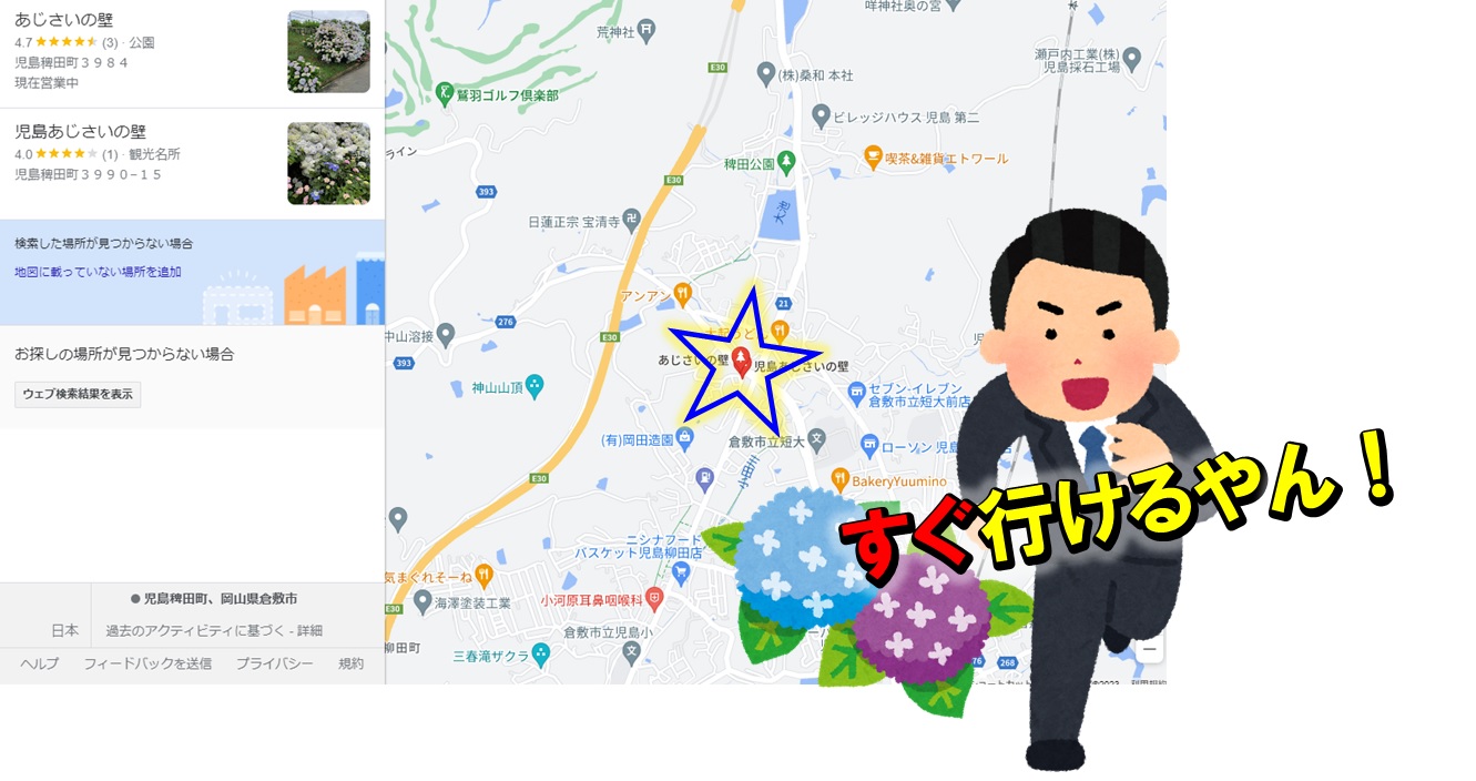 撮影場所は、倉敷市児島の「あじさいの壁」というところらしいです!