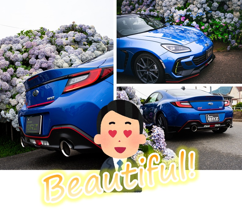 SUBARU BRZのWRブルー・パールと紫陽花のハーモニーがたまりませんね!