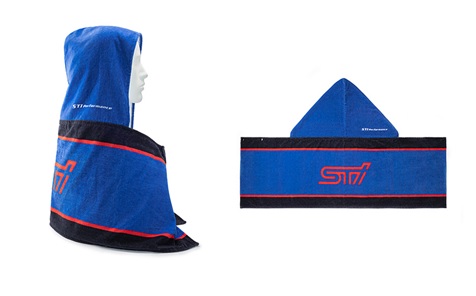 白地にチェリーレッドのSTI文字のシンプルなデザインです。