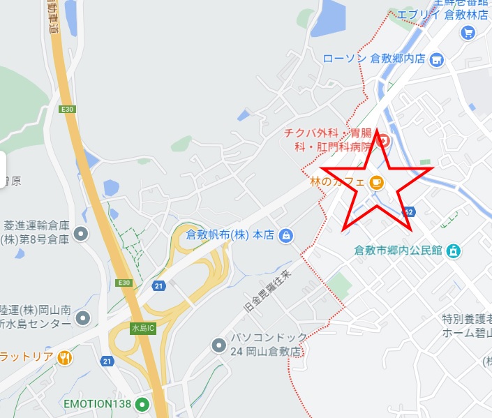 水島インターを降りて、西へ車で数分の場所で、岡山市からでも気軽に行けますね!