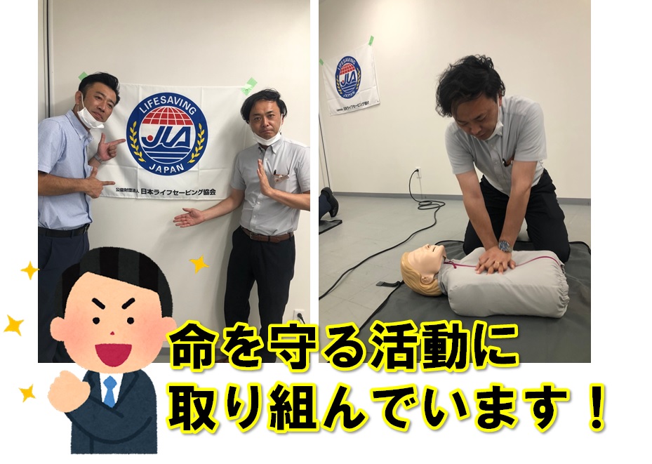 その活動の一環として、当社スタッフも命を守る活動で心臓マッサージやAEDの使用方法について、講習を実施していただきました。
