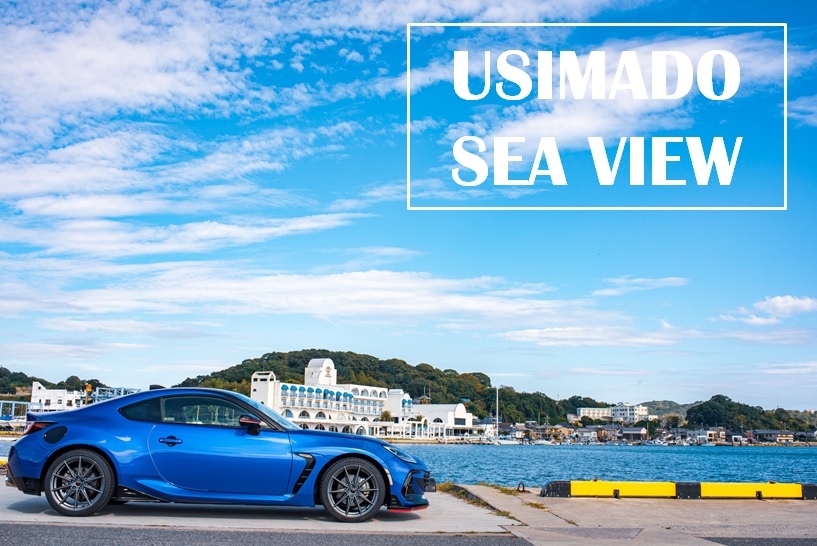 牛窓の「ホテル リマーニ」とSUBARU BRZの2ショットです!牛窓の海と空とのコントラストも素晴らしいですね。
