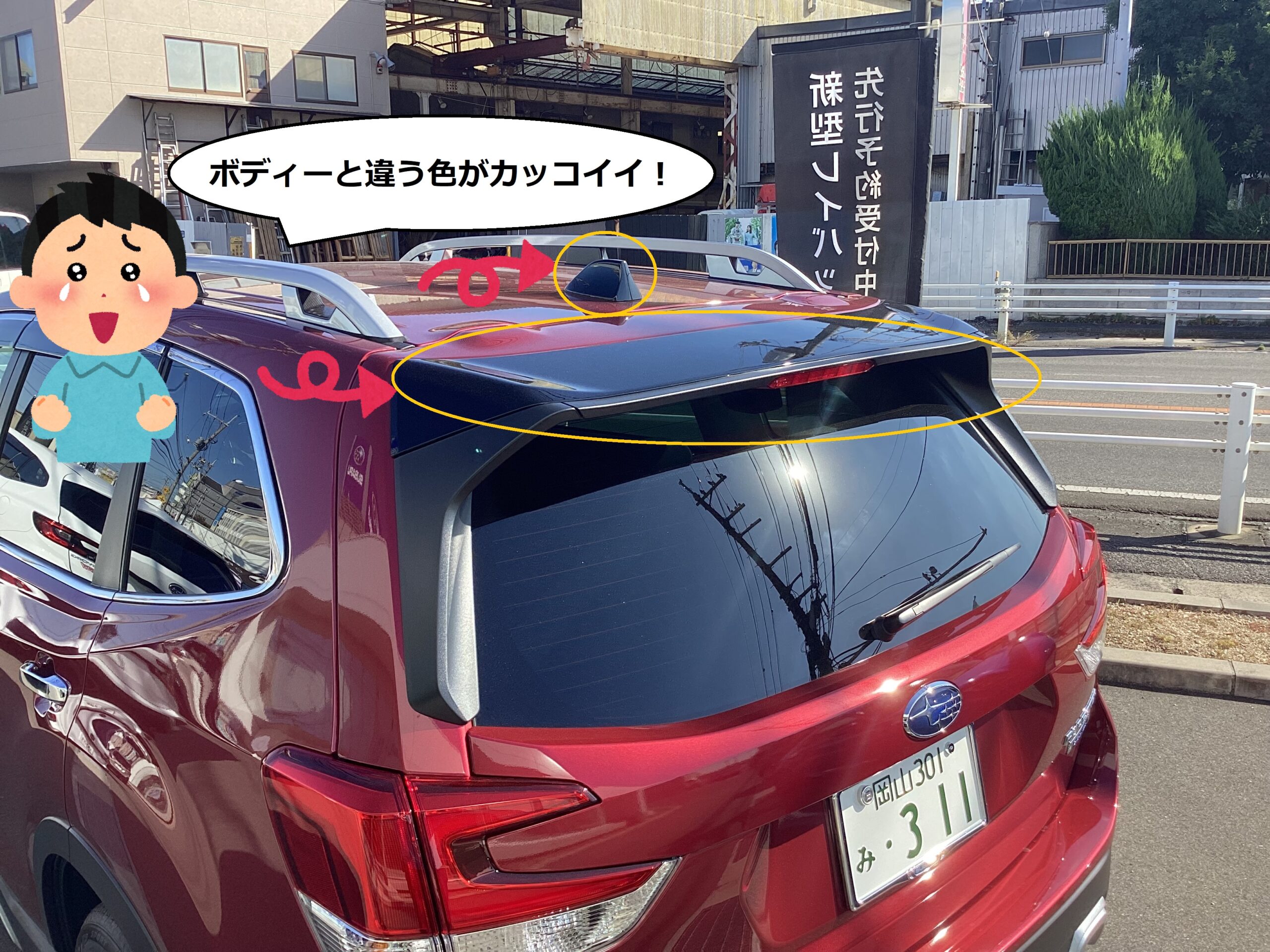 店長「ルーフアンテナとルーフスポイラーが黒色になってますね!!」
