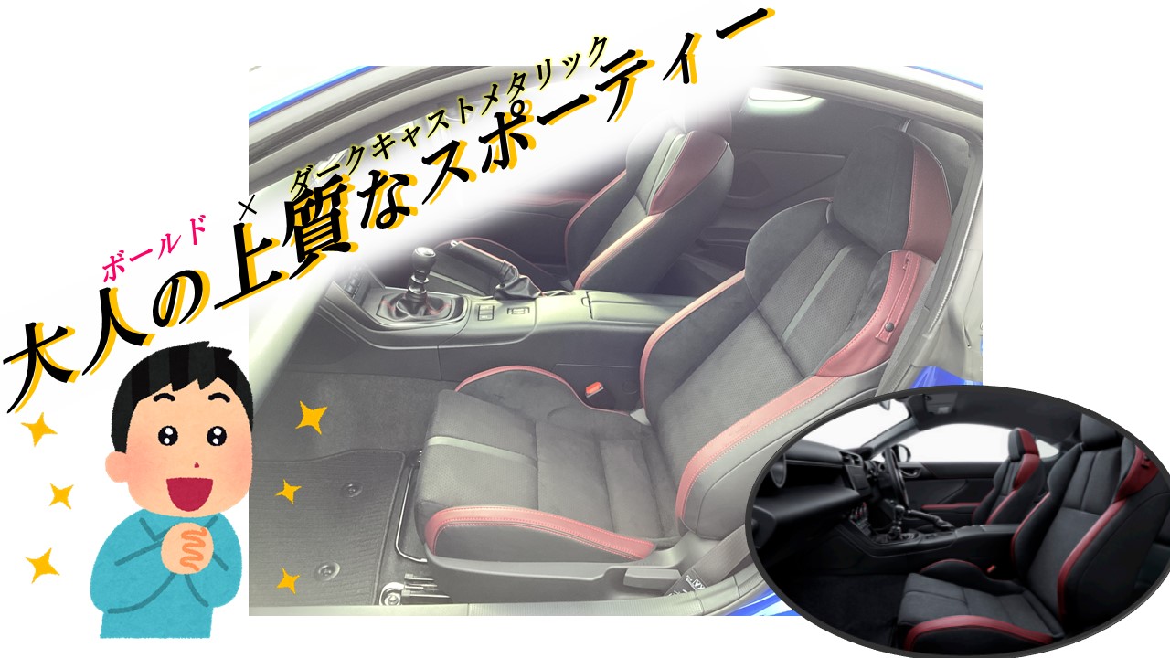 まず、ドアを開けてSTI専用「ボールド×ダークキャストメタリック」の室内がお出迎えしてくれます!