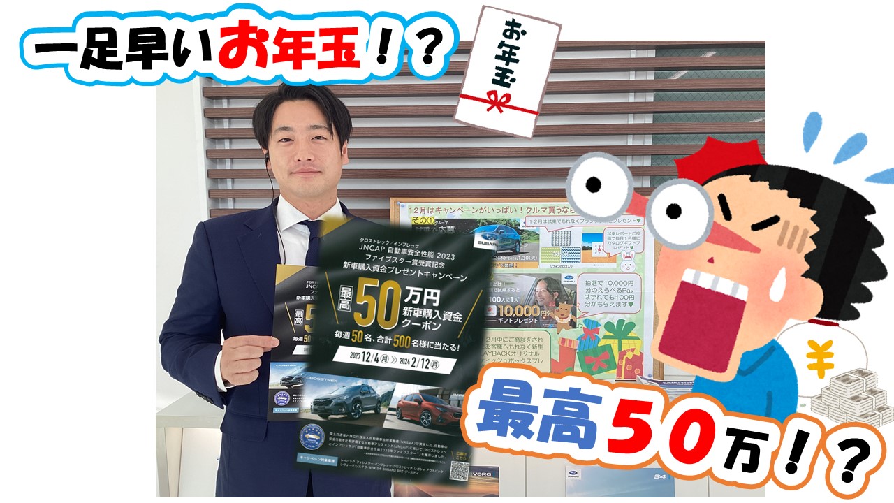 最大50万円の新車購入資金クーポンが当たるとのこと