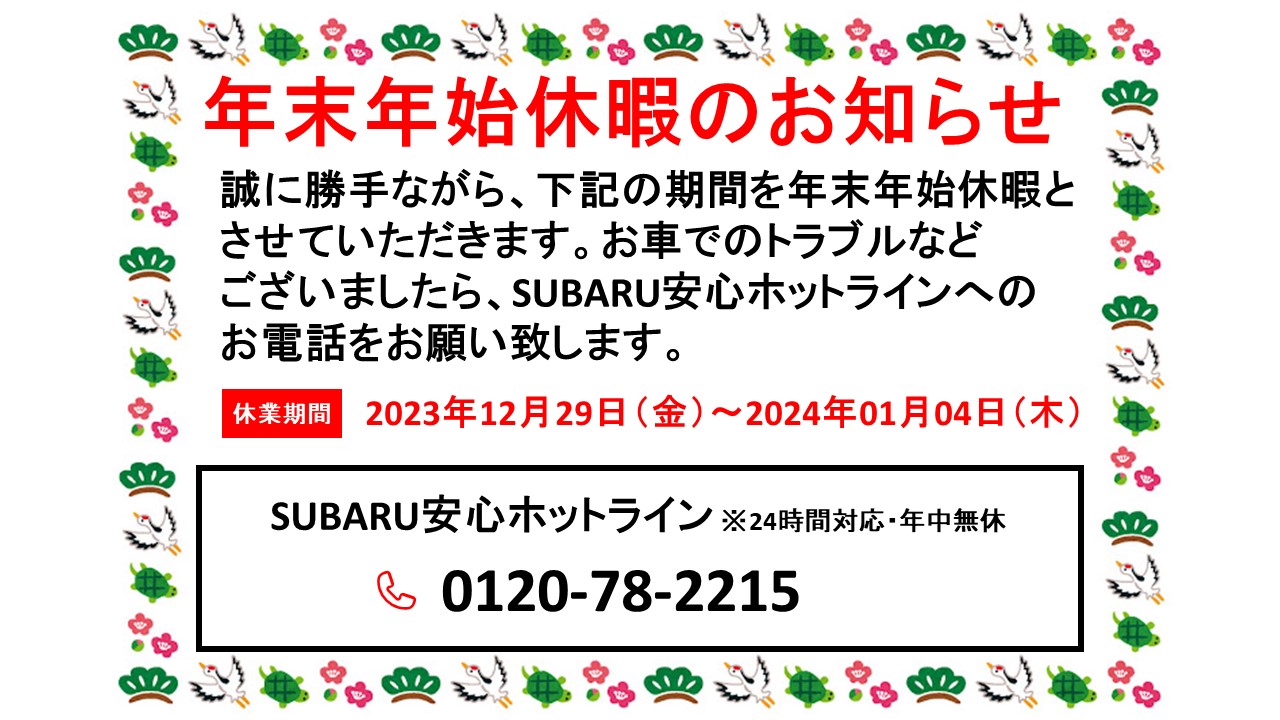 年末年始休暇とさせていただきます。お車でのトラブルなどございましたら、