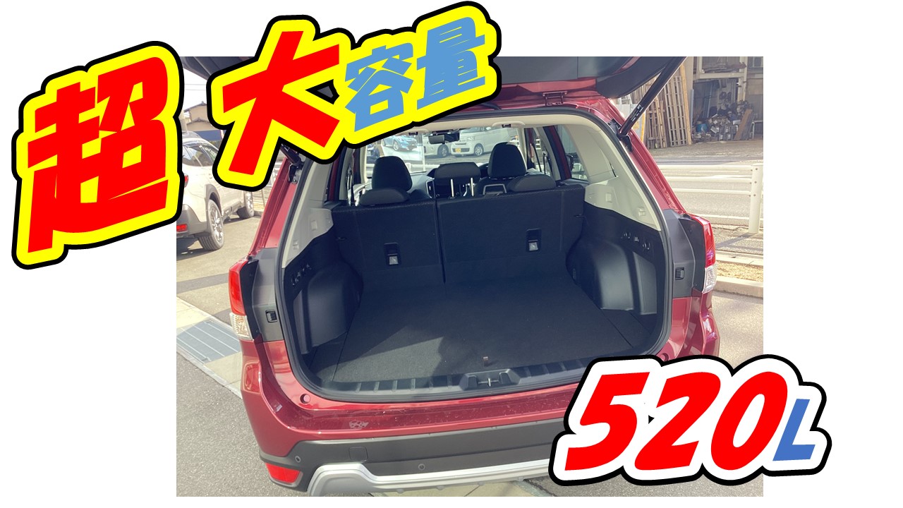 佐々田CCA「お任せください!、まずこの大容量ラゲッジスペースを見てください!520Lを誇るこのサイズは、大人二人が並んで座れるほどのサイズ感です!また、開口幅も広いので積み込み積み下ろしもラクラクです!」