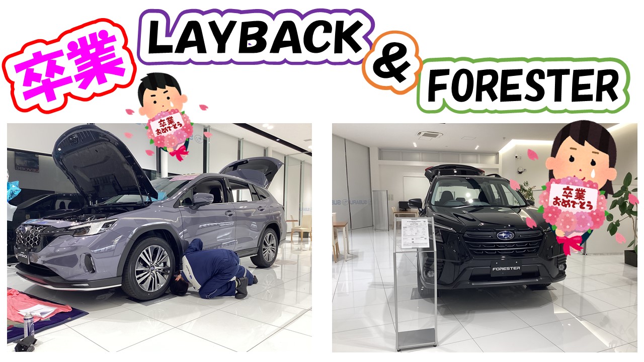 久米店は大きな店舗であることから、LAYBACKとFORESTERの計二台の展示車
