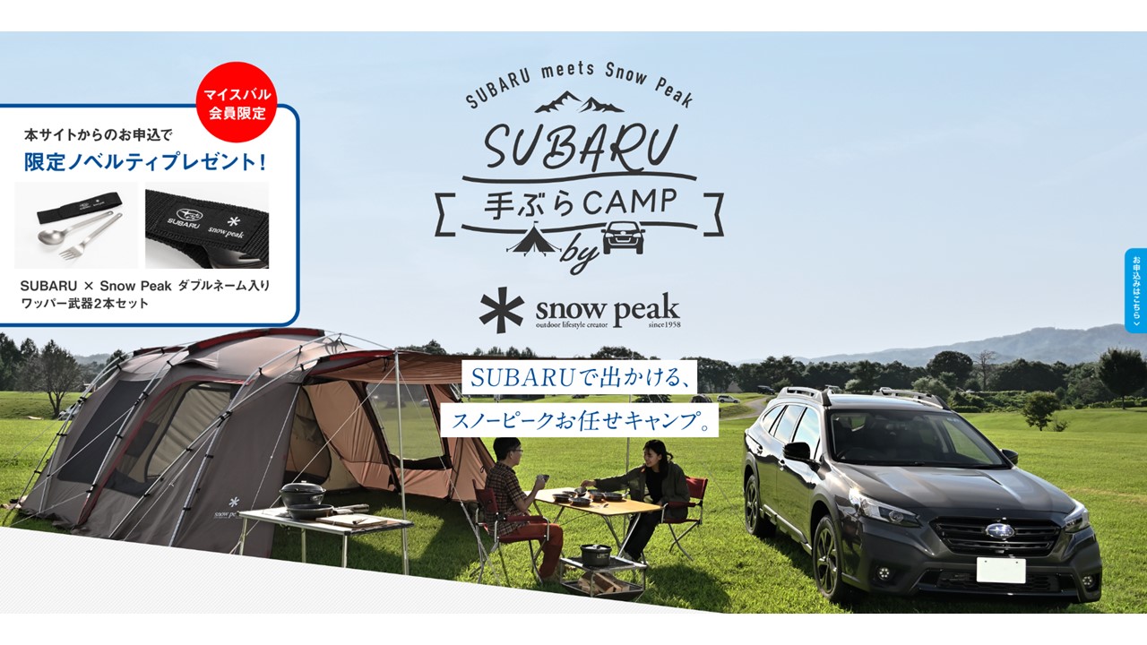 現在のイベントは、「snow peakとコラボの手ぶらキャンプ」となって