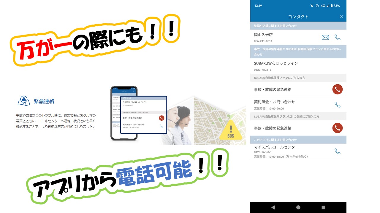また、事故の際の緊急連絡先などカーライフを安全に愉しく過ごして頂くため