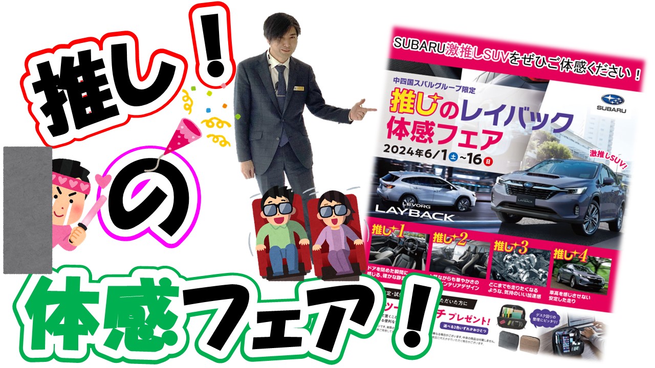 お客様の推し!を見つけませんか!!「推しのレイバック体感フェア!開催!!」・・・「試乗を超えた楽しみを!」SUBARUお試しキャンペーン!・・・ついに試乗車、再登場!次もFORESTERだがSTI!!