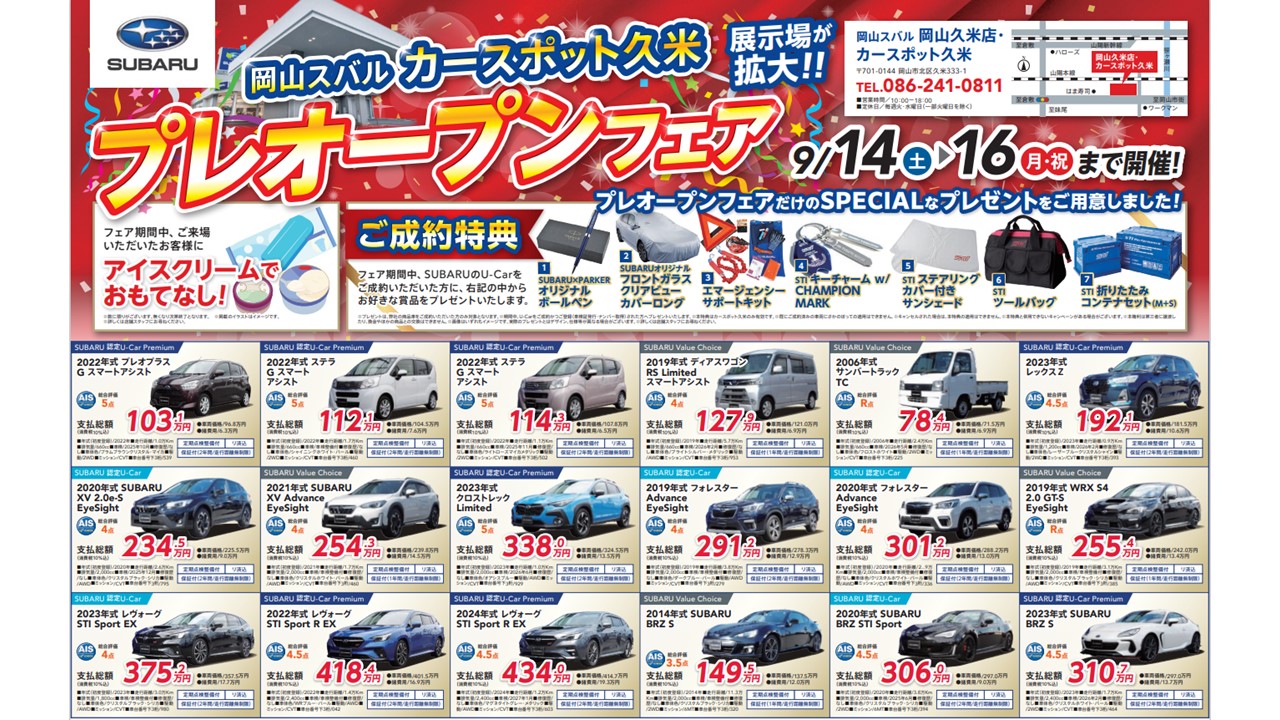 いつも岡山スバル久米店のHPをご覧いただき誠にありがとうございます。