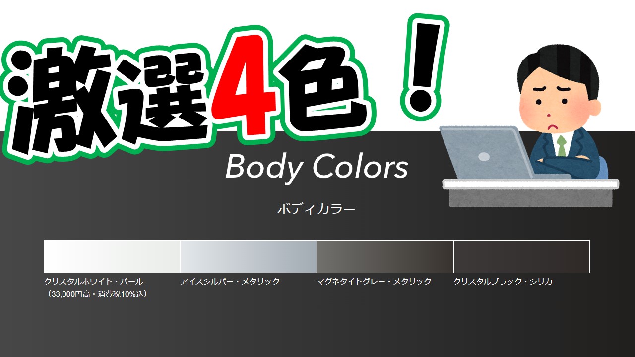 配色は、中のブラックインテリアをより引き立たせる4色をご準備しております!