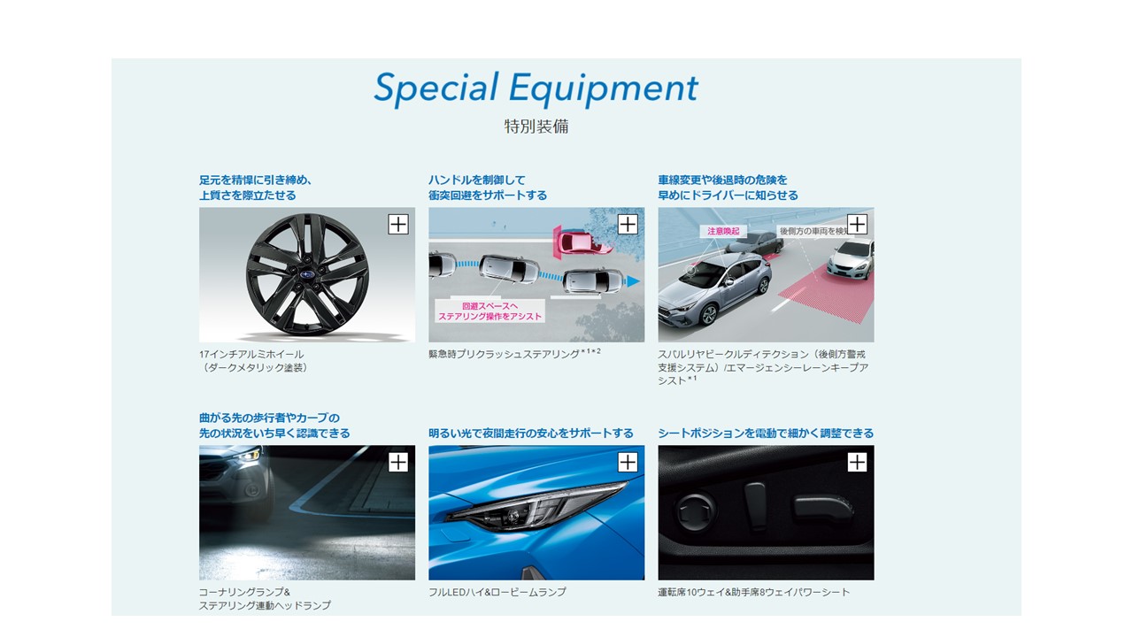 「LEGACY OUTBACK Black Selection」「IMPREZA ST Smart Editon」