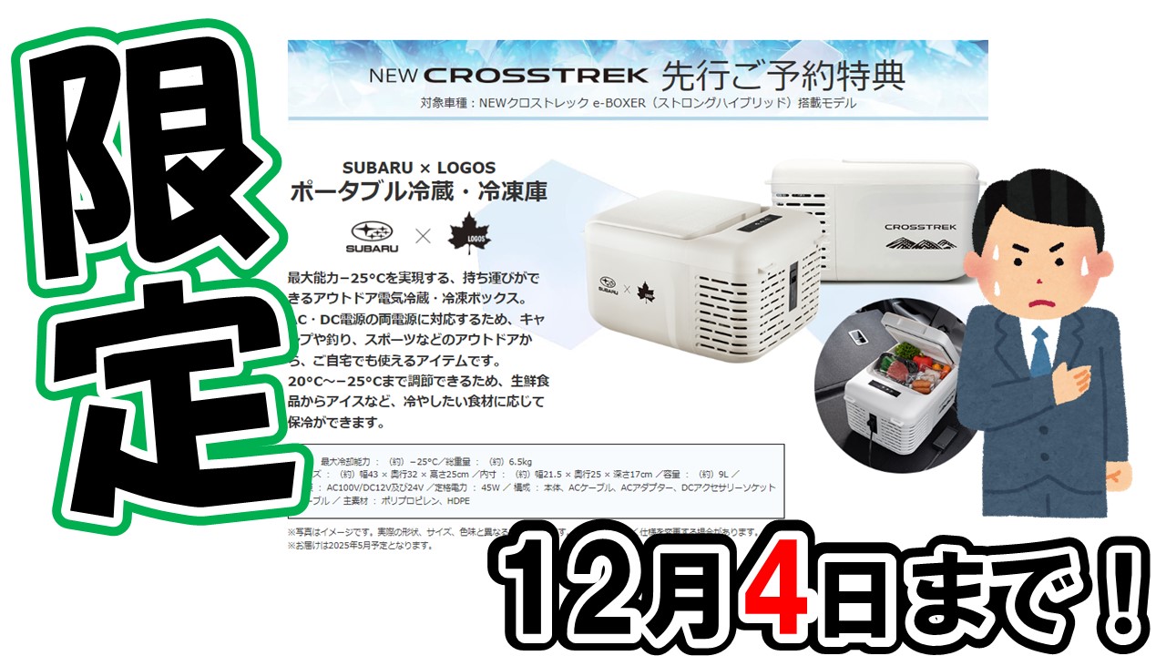 「SUBARU×LOGOS ポータブル冷蔵庫」をプレゼント致します!
