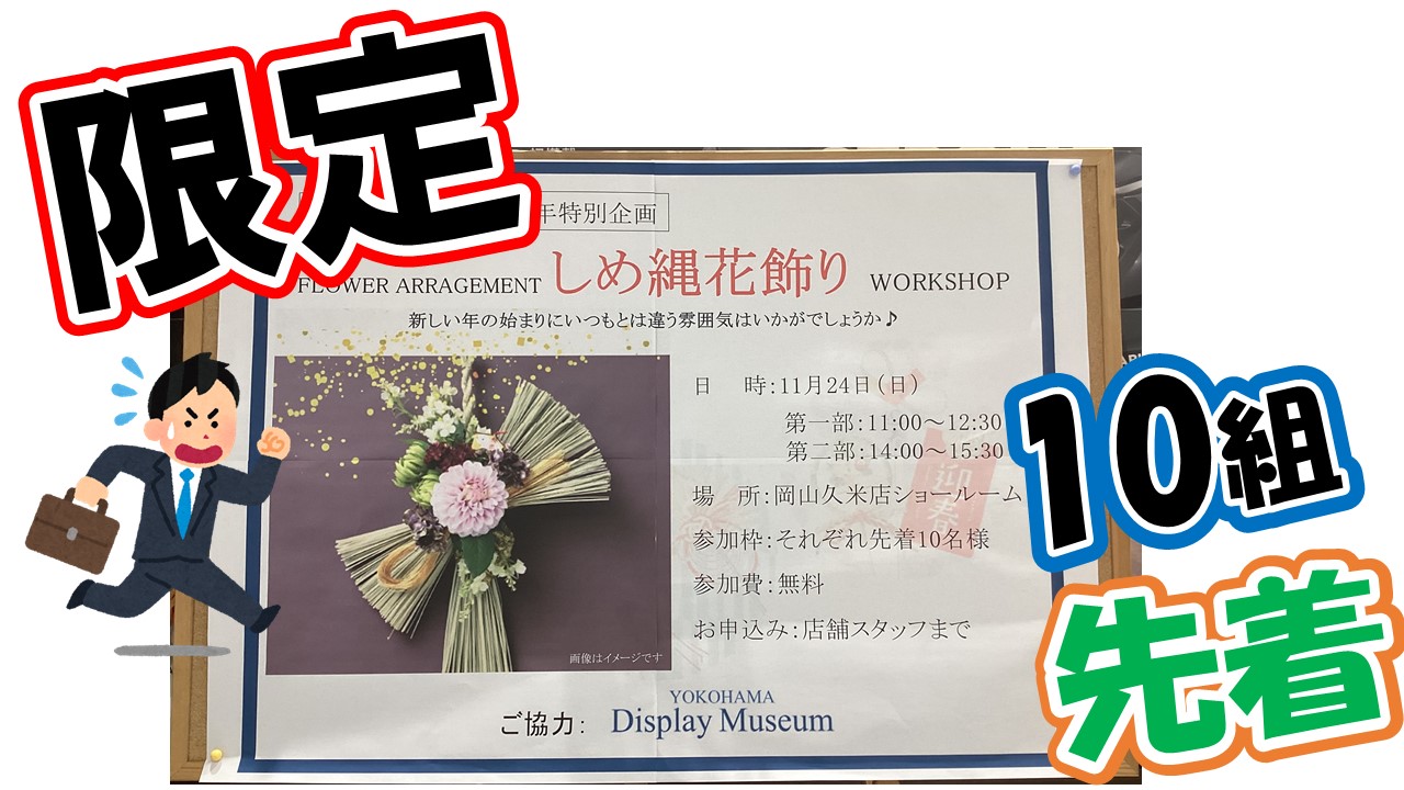 また、11月24日には、「しめ縄花飾りづくり」を開催いたします!