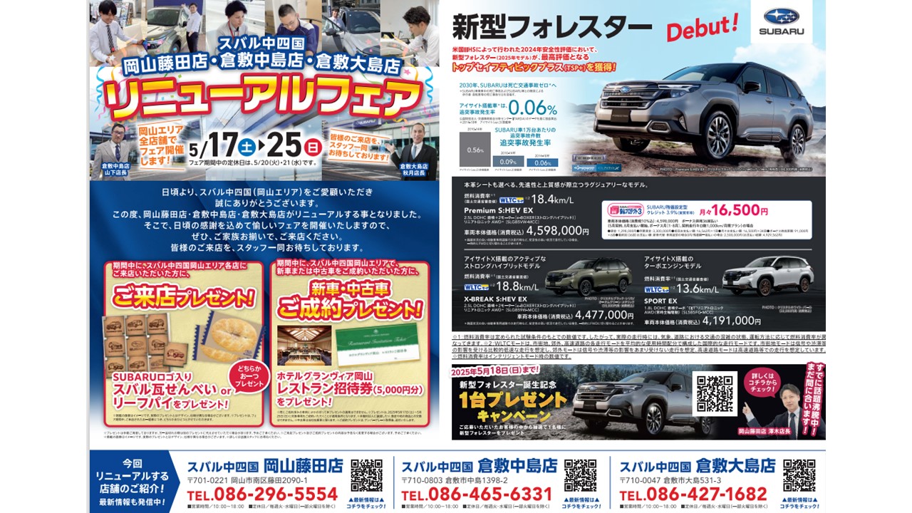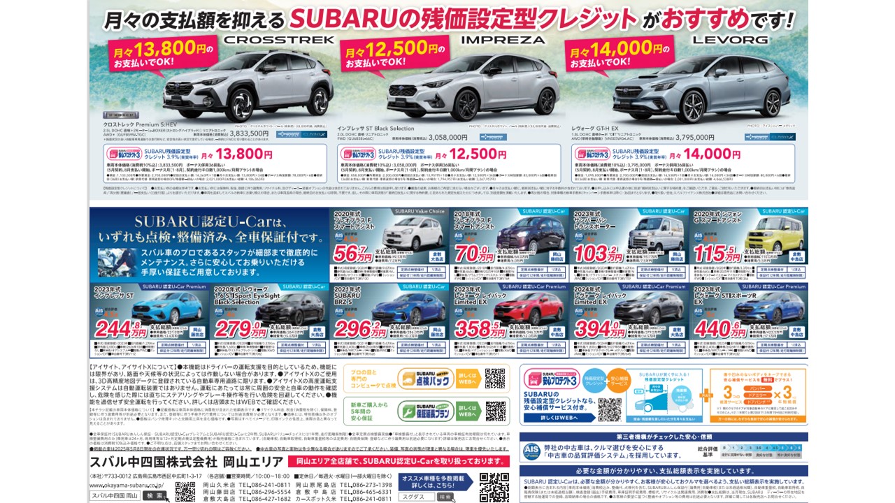 いつも岡山スバル久米店のHPをご覧いただき誠にありがとうございます。