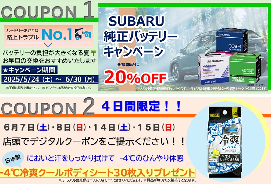 バッテリーも引きつづきキャンペーンをしております。