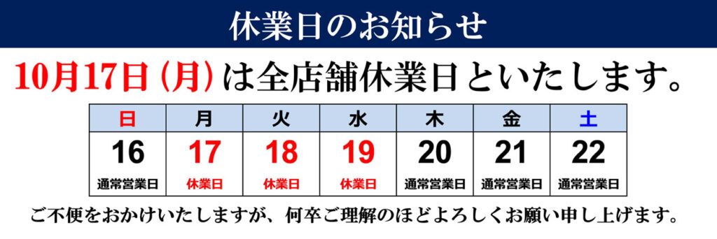 来週17日18日19日と定休日となります。