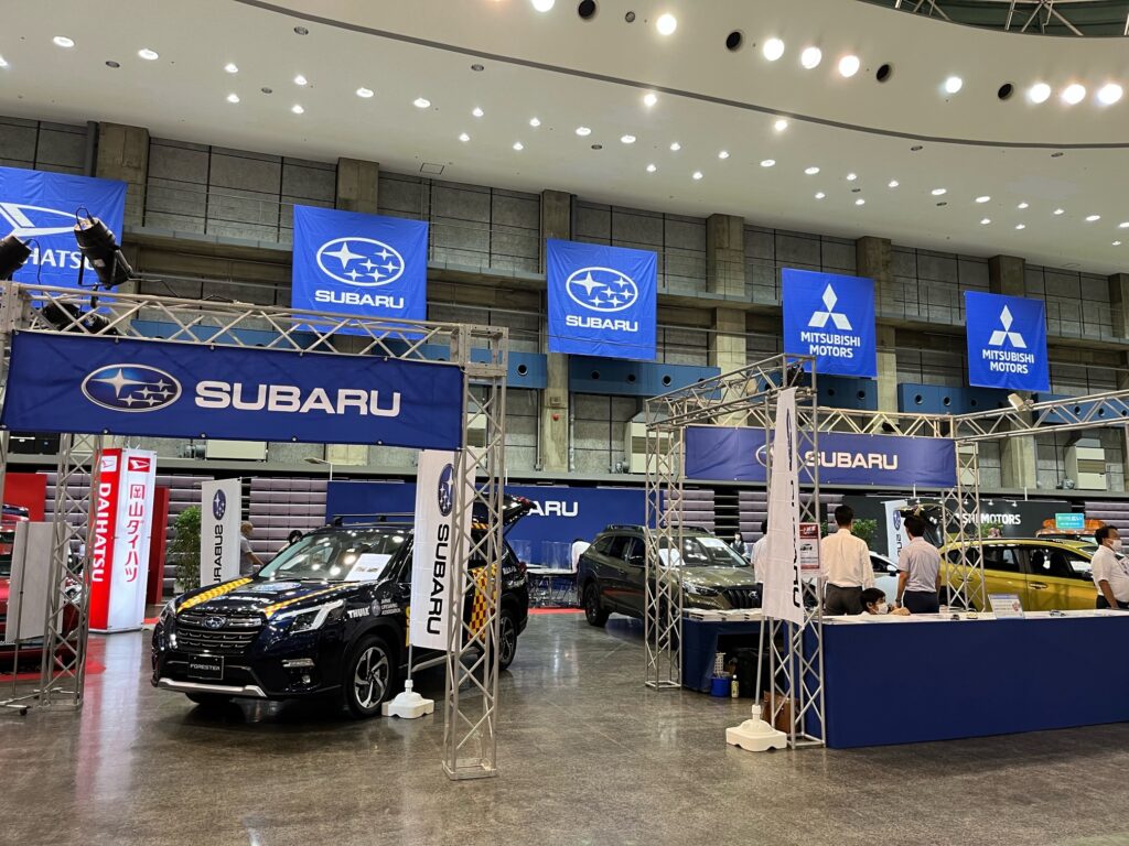 ↑スバルブースの写真です。色んな車種がありわくわくしますね。
