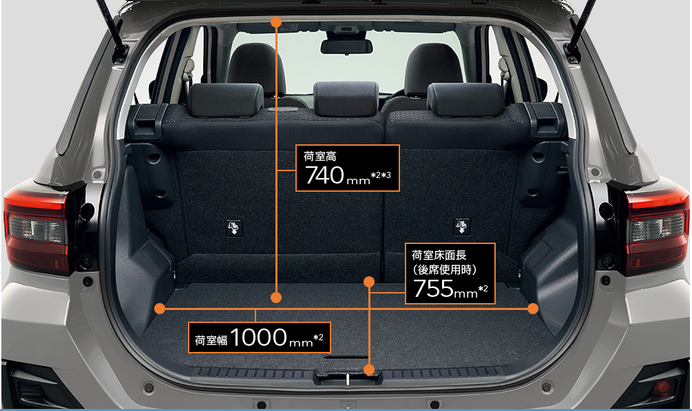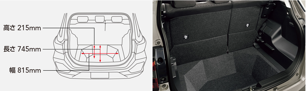 カーゴルームも十分にゆとりがあり、後席に人が乗っていても荷物をたっぷり積み込めます。