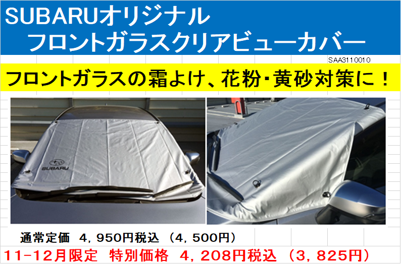 また、これからの季節に気になってくる霜よけに使えるフロントガラスクリアビューカバーを期間限定特別価格で販売しておりますので、皆様このチャンスをお見逃しなく!!