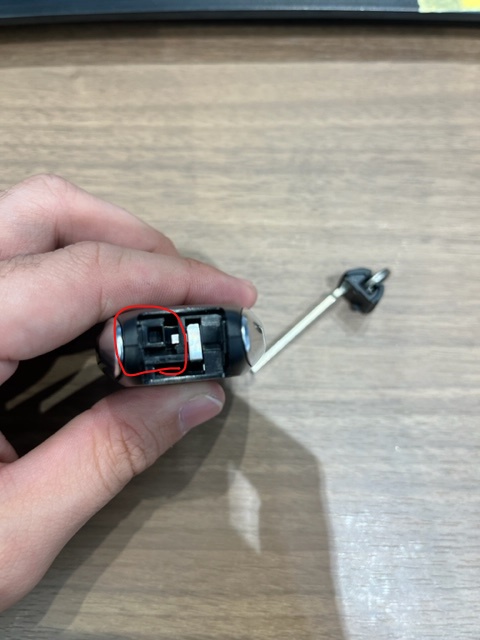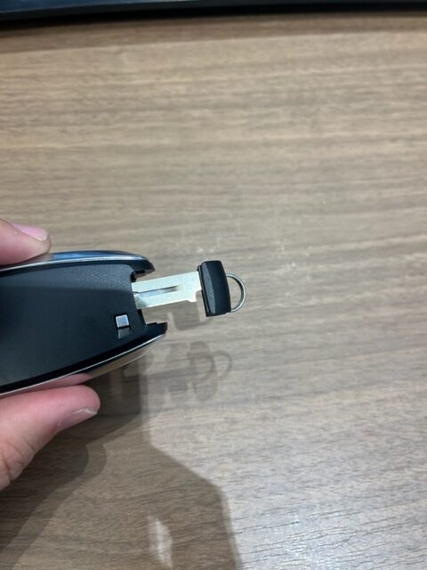 まずは裏にあるシルバーのボタンを押して鍵を取り出します。
