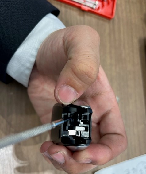 取り出したらしるしのところに小さめのマイナスドライバーを差し込んで写真のように浮かせます。