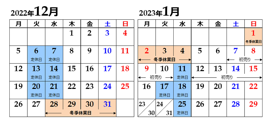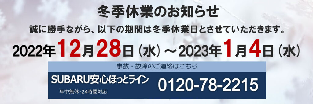 12月28日(水)~1月4日(水)までの間、冬季休業とさせていただきます。
