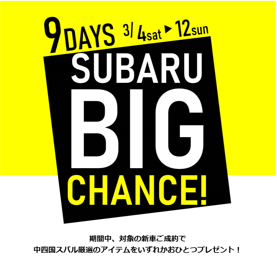 12日までSUBARU BIG CHANCE! を同時開催中!!