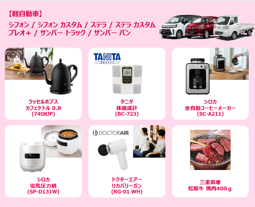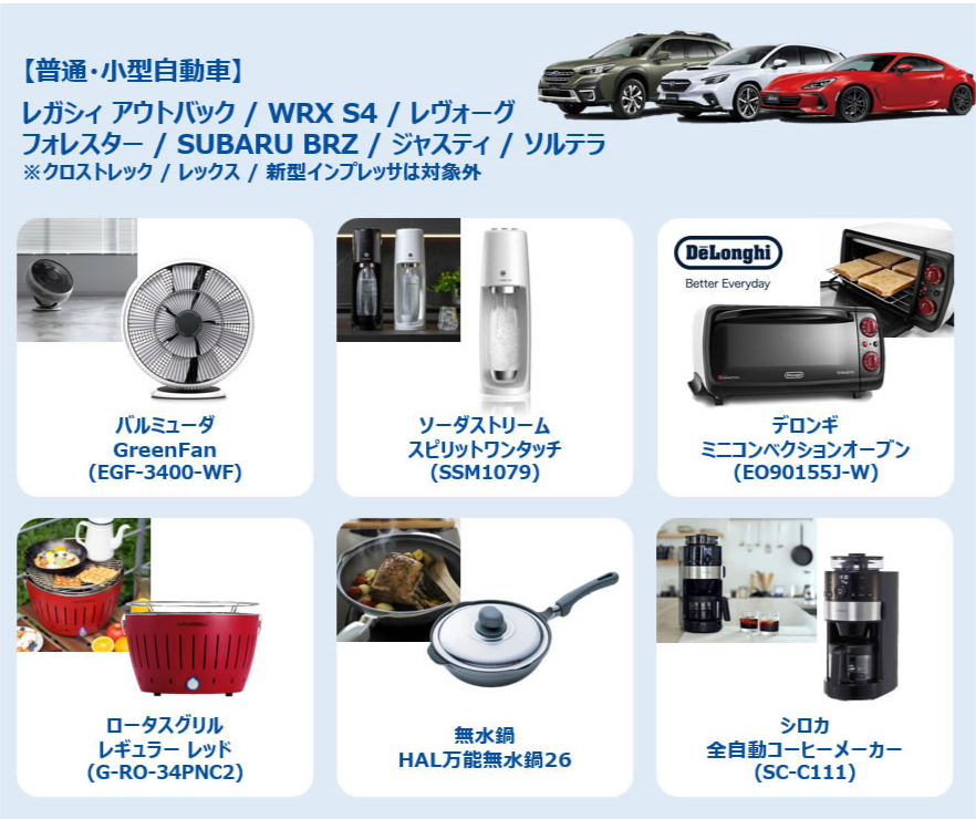 期間中、対象の新車をご成約でいずれか一つプレゼント!!