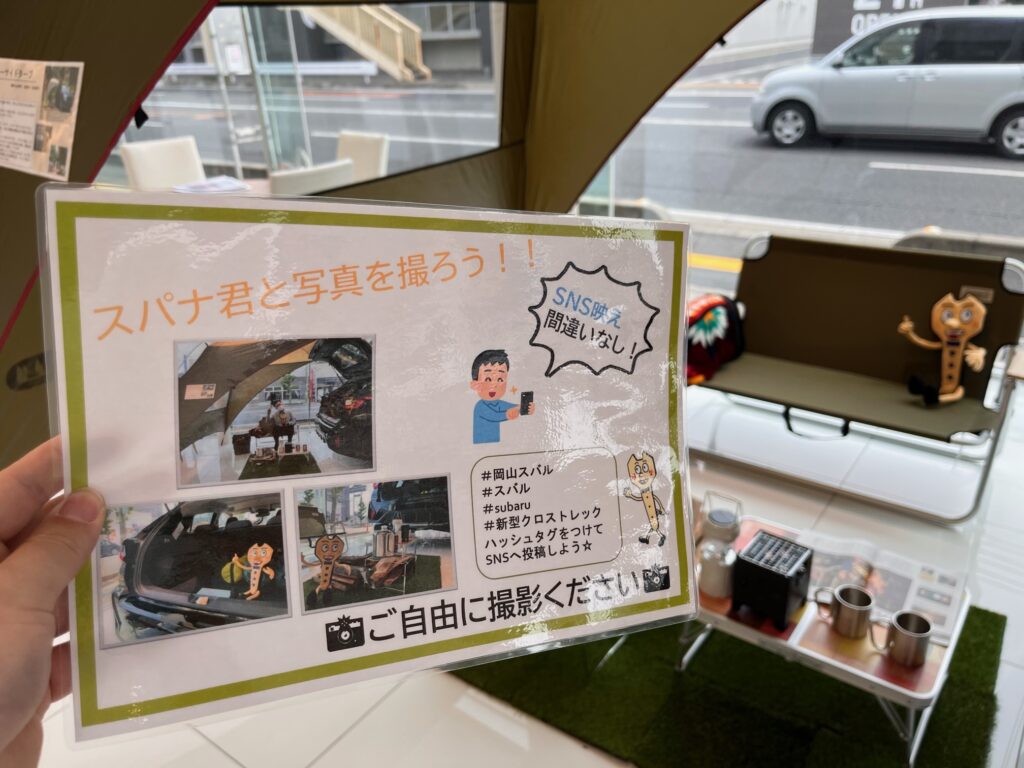 ただいま原尾島店では、受付のTさんが制作してくれたスパナ君と写真を撮ってSNSに上げようキャンペーンを実施しております!!