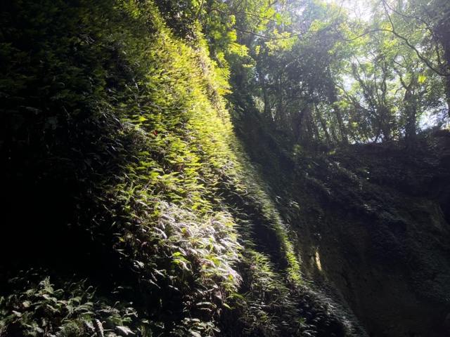 歩く道は小さい川を飛び越えながら歩いていくのですごく大変でしたが目的地まで行くと凄く綺麗な自然の風景を見ることができ、まるでジ〇リのも○○け姫も世界に入ったような感覚になりました。