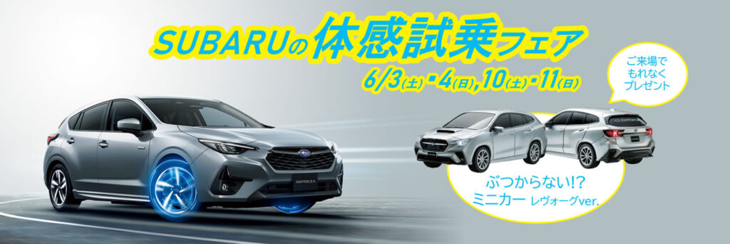 6月3日土曜日、4日日曜日、10日土曜日、11日日曜日にスバル体感試乗フェアを開催いたします!!