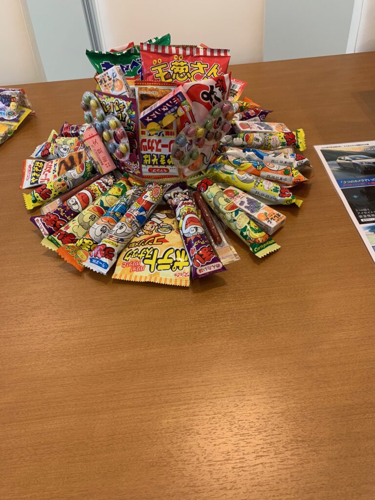 いつも店舗のメンバーの誕生日に駄菓子をプレゼントして下さるので、そのお返しに駄菓子を大量にプレゼントしました!