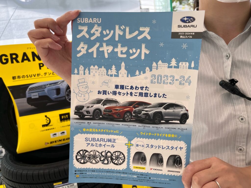 岡山スバルではお得なスタッドレスタイヤセットをご用意しております!