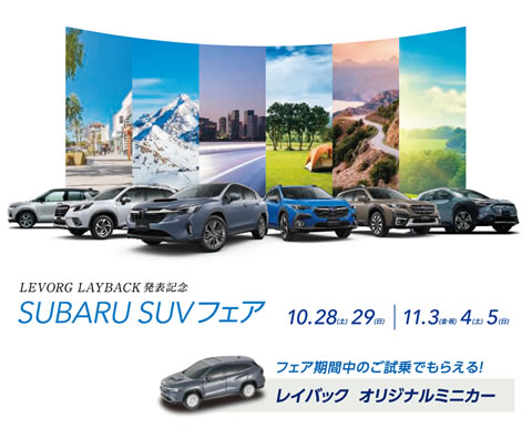 次の10月28日土曜日、30日日曜日、11月3日金曜日~5日日曜日でレヴォーグレイバック発売記念、SUBARU SUVフェアを開催いたします!!