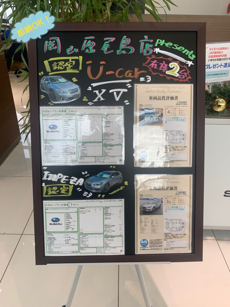 ただいま、SUBARU XVとIMPREZAの2台を展示しております(^^)/